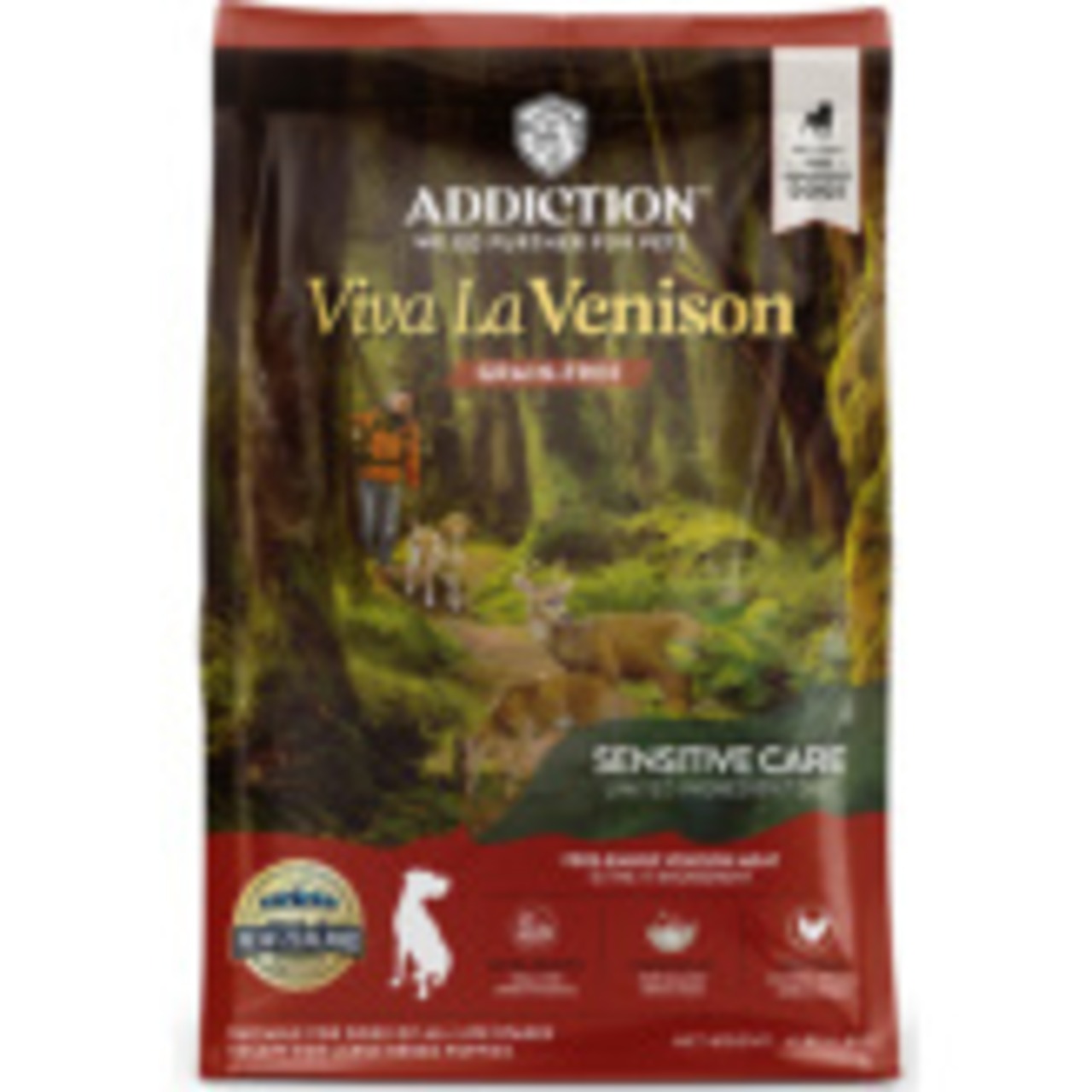 ニュージーランド産フリーレンジベニソン(鹿肉)に加え、果物と野菜、プロバイオティクスを配合したアレルギー対応のグレインフリーフード。ホルモン剤またはステロイドを一切使用せず、青々としたニュージーランドの牧草地で育った高品質な鹿肉のみを使用しています。鹿肉は、一般的に食べられる他の肉類よりコレステロールと脂肪分が非常に少ない肉です。 また、腸内環境を整えるプロバイオティクスを配合しています。
